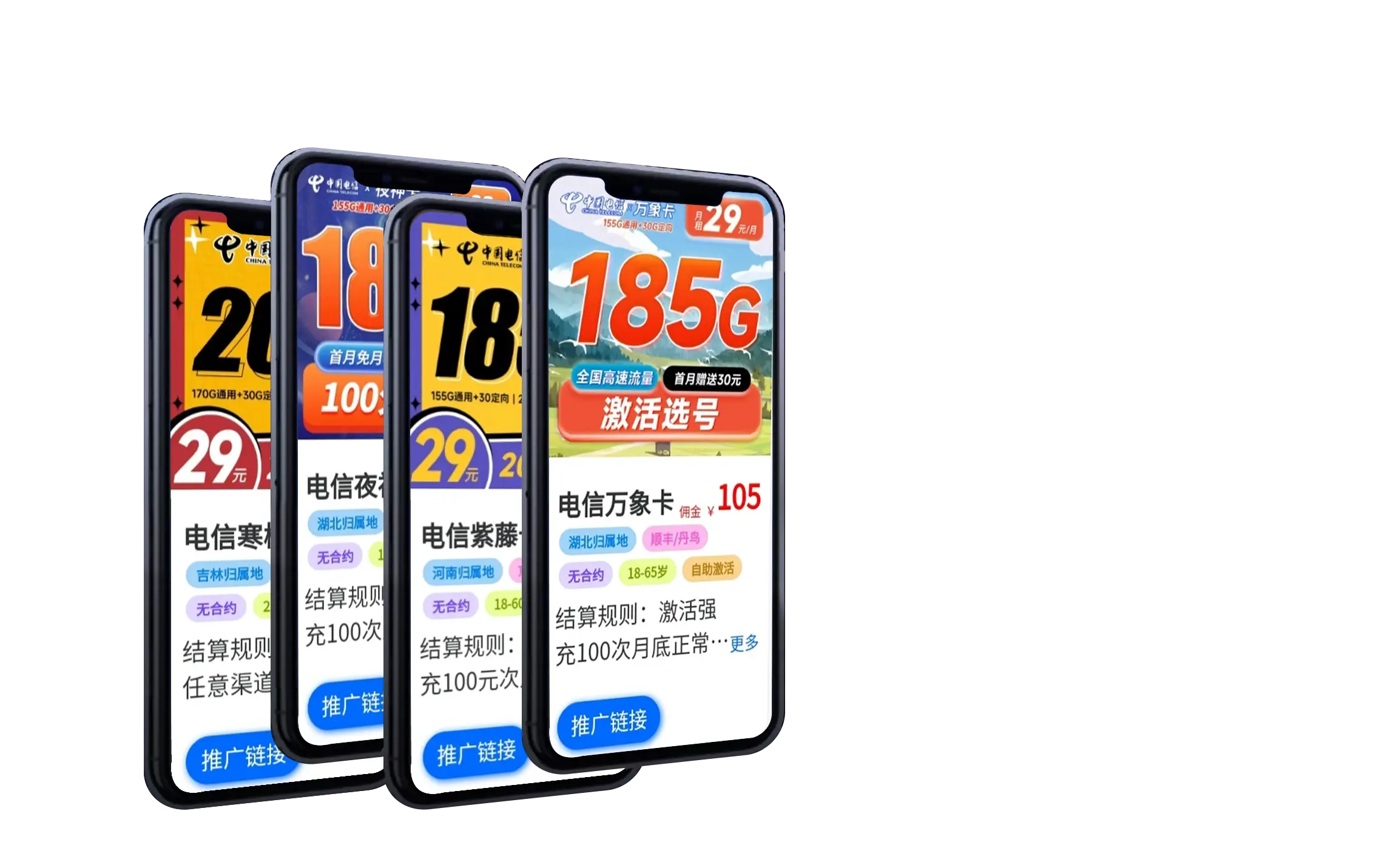 运营商大流量套餐推广活动旨在帮助运营商推广高流量套餐。这些套餐以低月租费和丰富的流量为特点,由运营商官方渠道提供支持。目前,越来越多的人参与到这一推广活动中,在各大平台上都可以看到他们的身影,比如小红书、B站、抖音、快手、知乎等。这些推广者通常拥有自己的流量卡平台,通过推广办卡商城或链接来轻松实现推广目标。
