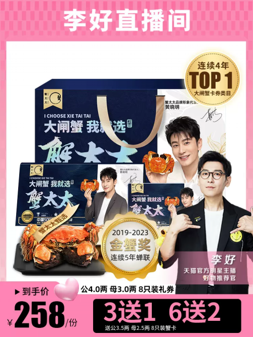 蟹太太整合了市场上优质的中华绒螯蟹品种资源,精选江苏境内优质水域,以好水养好蟹。连续4年蝉联金蟹奖,连续3年蝉联品类TOP1。古风礼盒精致典雅,配以高端设计,既适合礼赠他人,又适合家庭共享。